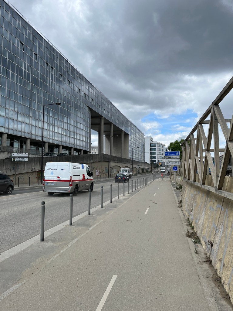 Past a derelict amusement park. Back and forth crossing the Seine on old graphited highway bridges. Through well worn neighborhoods and on freeways.
