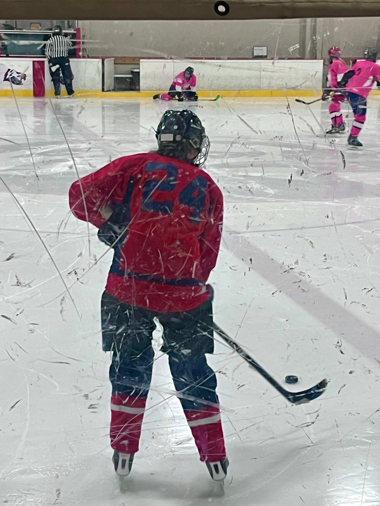 After a quick chat, She rushed off to the ice for warm up and soon the game began.